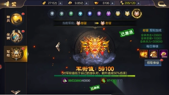 押运获得的奖励(军功、军印)可以用来升级主公军衔,主公军衔激活后每日可以领取一定奖励作为俸禄。