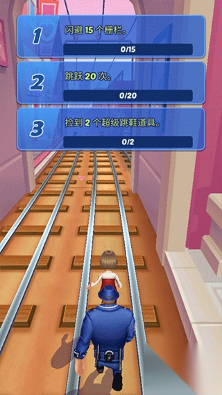 2、刚进入跑酷界面,上方会提示相关任务目标,完成任务会获得相应的奖励