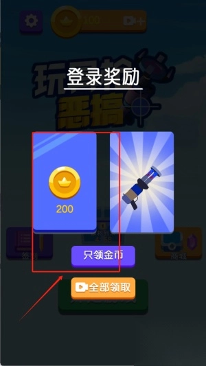 1. 在登录界面,点击“全部领取”橙色按钮,就能一次性获得100金币以及200D+道具奖励,无需逐个领取,节省时间。