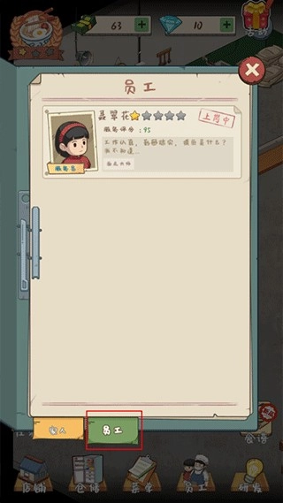 3、选择好要升级的员工后,接着点击升级按键,需要的一定金币才可以给员工进行升级。