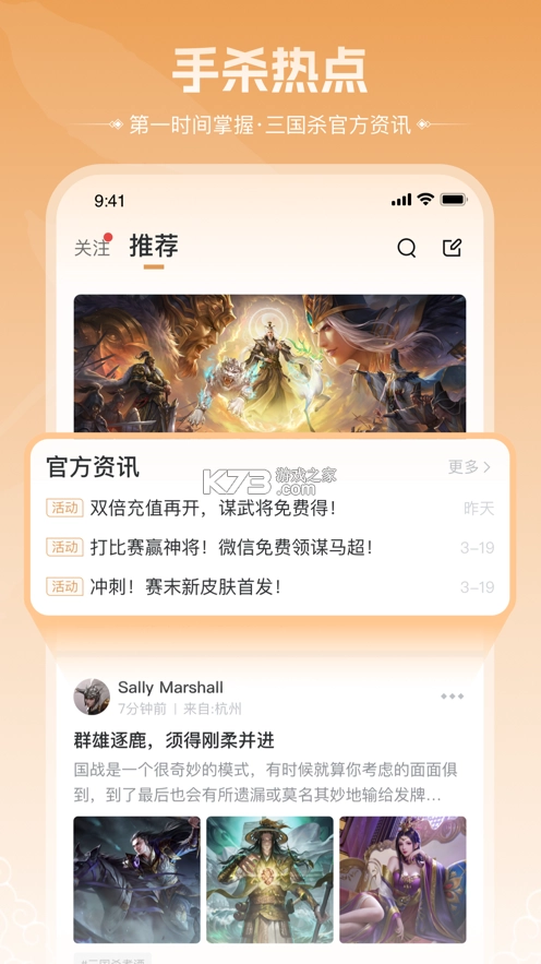 专为三国杀移动版玩家打造的最新游戏社区来啦!在这里,你能第一时间获取三国杀官方资讯,随时查看战绩,对局详情完整记录。既能尽情秀出自己的实力,也能及时发现并弥补不足。海量玩家汇聚于此,一起参与趣味话题,与其他玩家畅快交流。有需要的小伙伴,赶快下载体验吧!