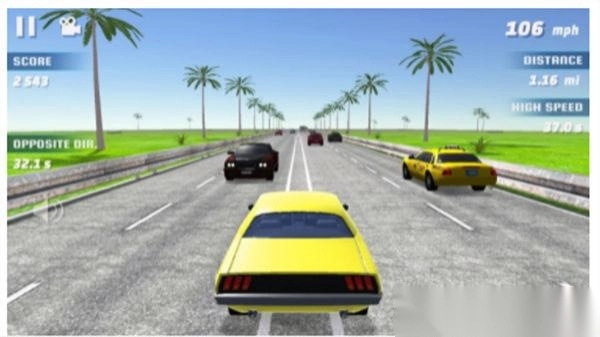 3、完成“ONE WAY”模式后,尝试“TWO WAY”“WRONG WAY”,适应不同车流方向,收集金币升级赛车性能,刷新“SCORE”记录,提升竞速技巧。