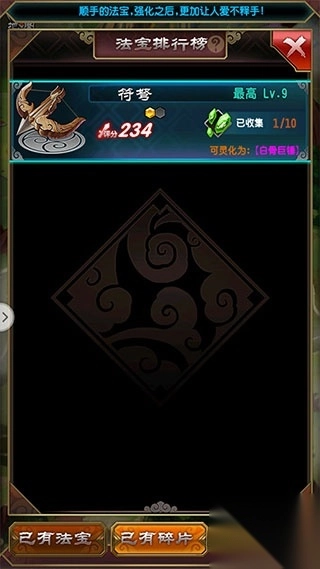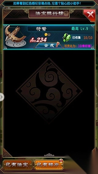 三、当法宝碎片达到合成数量要求时,会有相应的提示