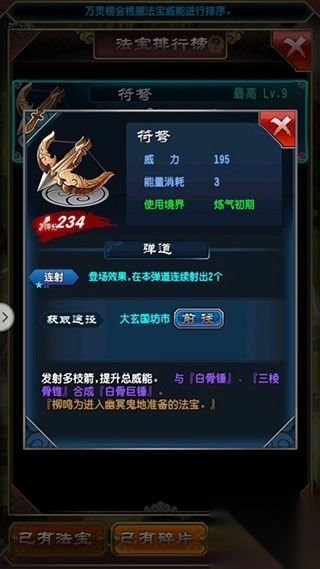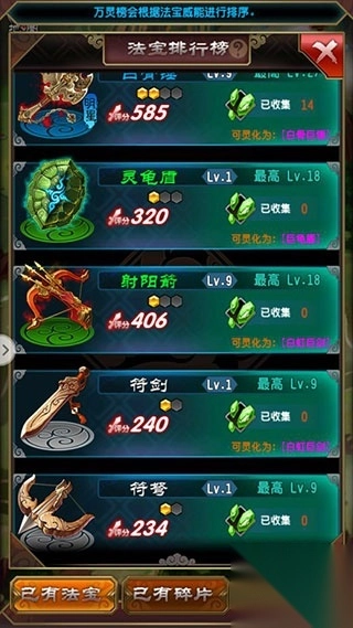 主要用途:获取法宝残片(例如:白骨锤残片,白虹剑残片)