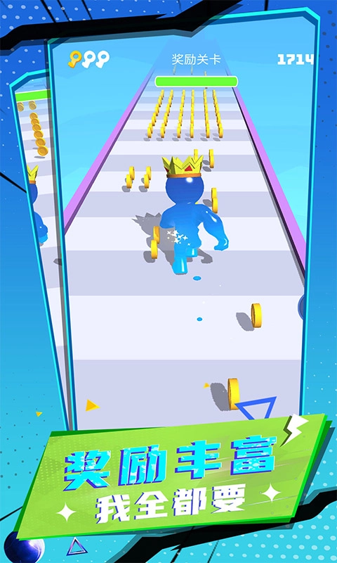 1、独特吞噬成长机制,打破常规跑酷玩法,橡皮人通过收集食物实现体型与能力的双重进化 。
