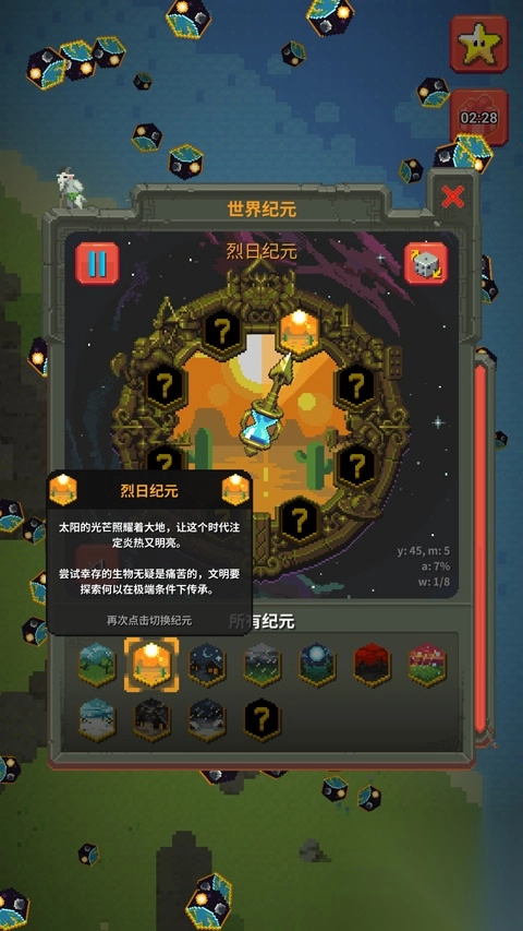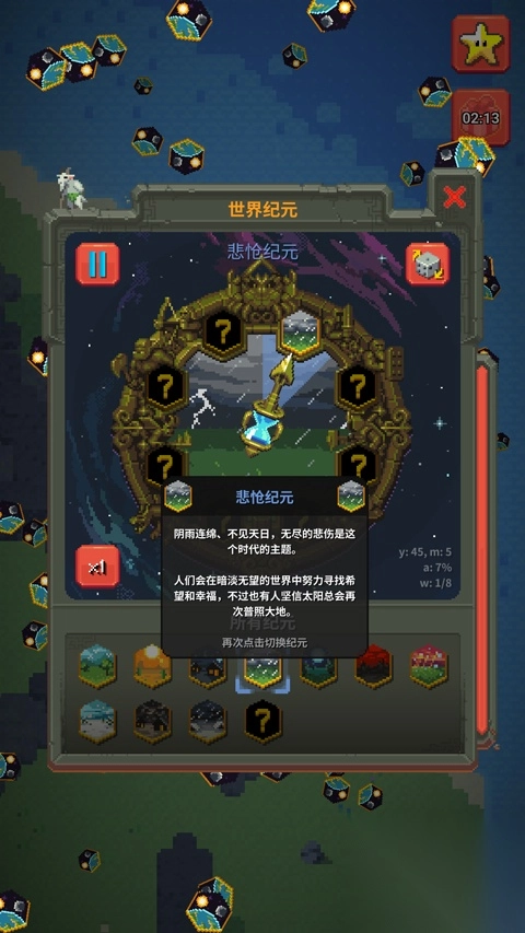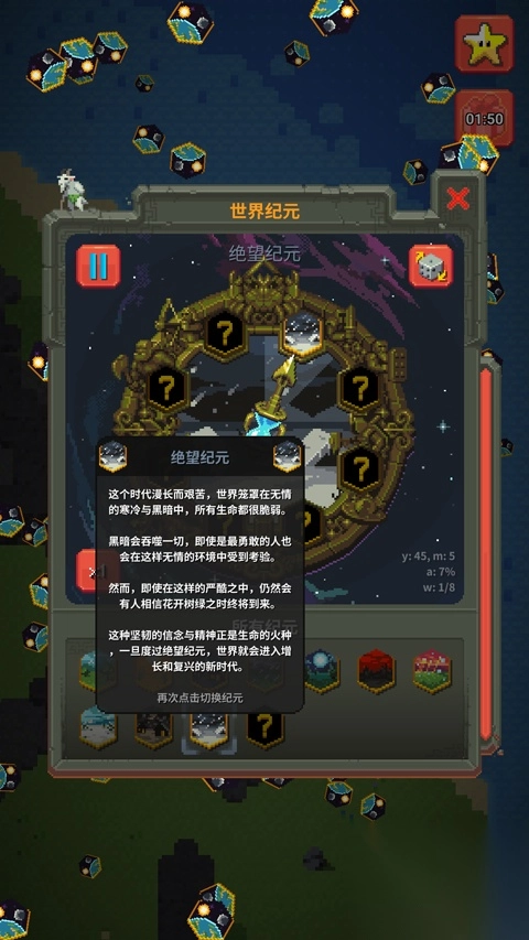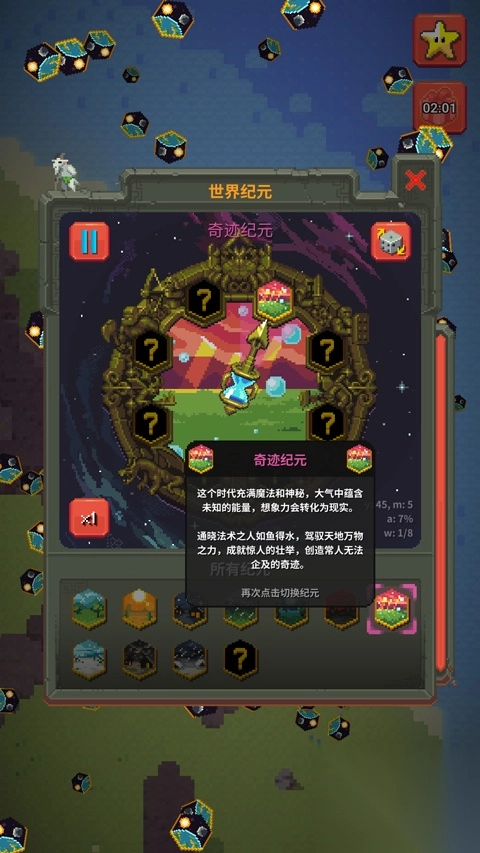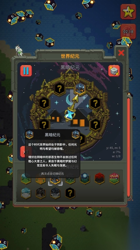 在worldbox游戏时,你能创建文明行为,正确引导它杰出或摧毁。