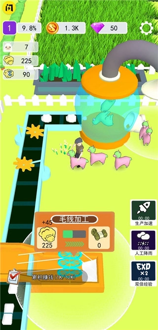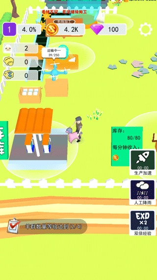 比较简单的玩法,让玩家经营自己的牧场与羊毛工厂,完成各种任务。