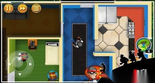 《盖世大盗神偷鲍勃》是一款以经典卡通风格打造的益智逃脱类手游。在游戏里,玩家将扮演神偷鲍勃,置身于满是监控、警卫和陷阱的场景中执行潜入任务。游戏运用俯视视角,展现出具有复古漫画质感的街区、豪宅等场景。玩家得借助利用阴影躲藏、密码锁、误导警卫巡逻路线等策略,在规定时间内成功盗取目标物品并安全撤离,从而体验从初出茅庐的菜鸟小偷逐步成长为传奇神偷的进阶挑战。