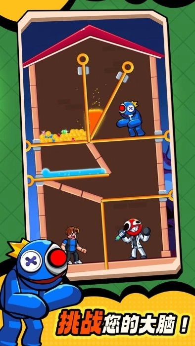 彩虹朋友拉针解谜是一款创意独特的物理解谜游戏。玩家要凭借精准拔出插销,营救那些被困的角色。游戏采用色彩明快的卡通风格,每个关卡都精心设计了巧妙的机关陷阱。玩家必须认真观察场景里的物理连锁反应,在恰当的时机拔出关键插销,方可成功完成救援任务。