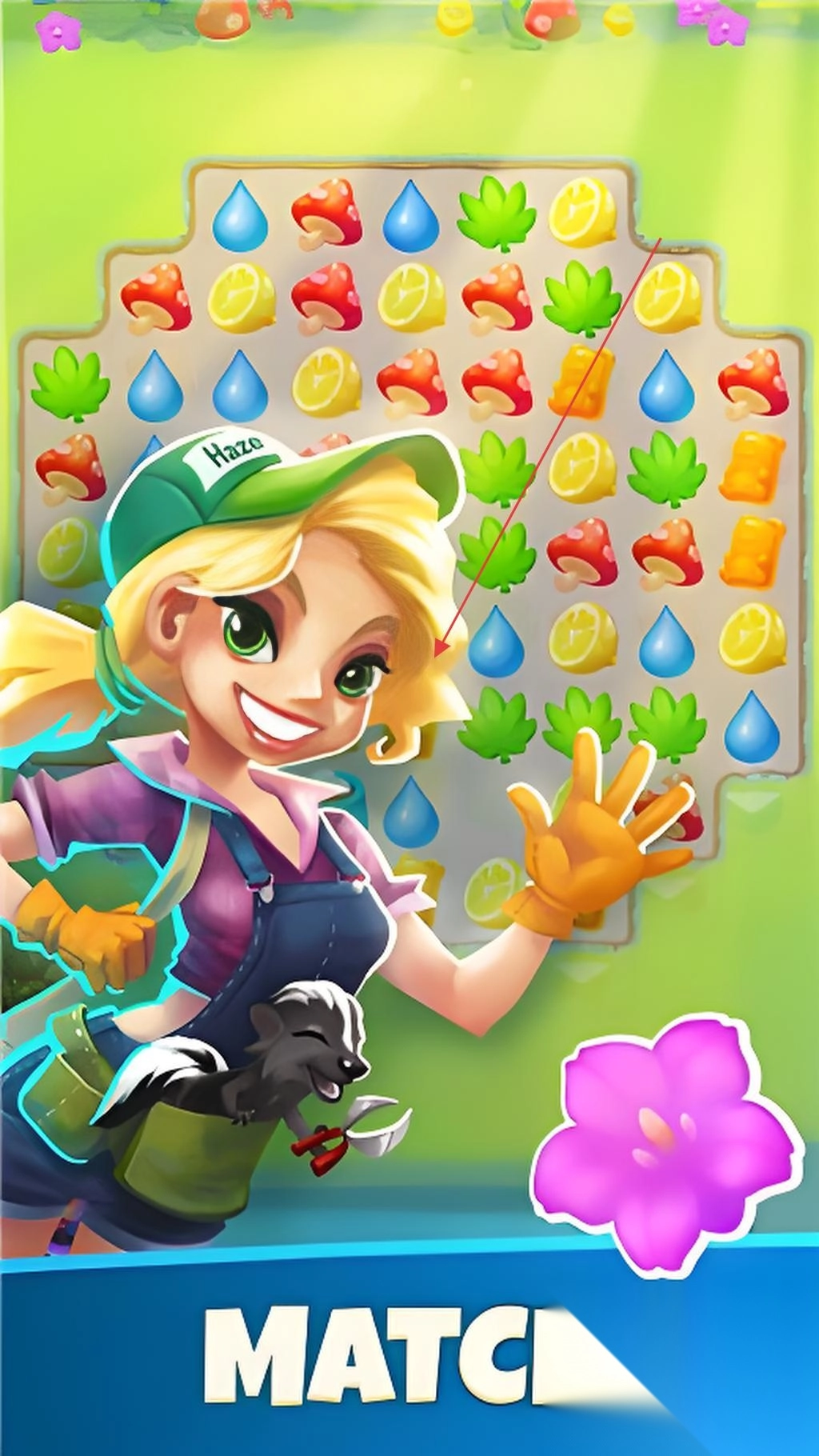 1. 进入游戏后,依照Handy Mandy的引导,着手种植第一株植物。完成基础的三消关卡,从而解锁初始道具。接着在游戏界面里,对种植区域的布局进行规划,以此为后续的经营打下基础。