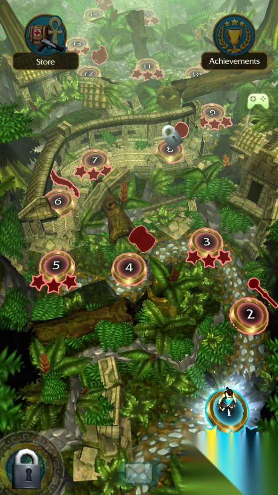 《劳拉遗迹逃亡》最新版是一款动作冒险类手机游戏,游戏题材为跑酷。其操作玩法沿用了《神庙逃亡》的核心模式,玩家通过上下左右划屏,操控劳拉在遗迹中飞速奔跑,过程中要躲避陷阱,同时收集沿途的考古道具。由于整个游戏主题基于《古墓丽影》,所以场景内的元素大多是危险的丛林和破败的遗迹。