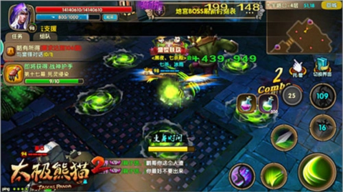 5、太极熊猫2游戏地宫中存在非常强力的buff,可以跨阶杀敌,等待boss的时候可以四处逛逛,如果吃到强力buff碰巧boss在这层刷新,那么boss就是你的了。