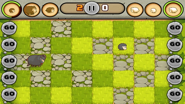 踏入游戏后,玩家能够通过左右滑动来挑选模式与场景,点击屏幕左右两侧的GO按钮,便可让小羊向前移动,展开力量争夺战的比拼,努力攻入对方领土以获取积分。游戏界面会展示双方羊的类型,方便玩家实时知晓对手的相关信息。