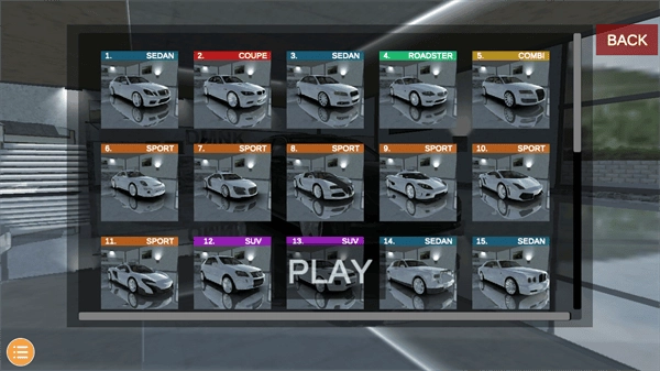 2、当进入车库界面后,你会看到各式各样不同的车型,此时你能够挑选一辆自己心仪的车来开启游戏。