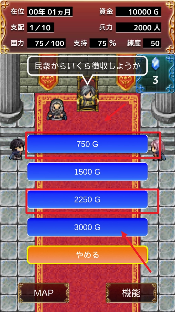3、在王国管理界面制定发展策略,建设设施提升国力应对即将到来的战争。