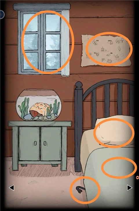 游戏刚开始会有一小段新手教程,这里略过攻略不讲。进入木屋后,首先要做的是收集物品。