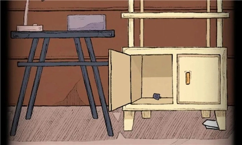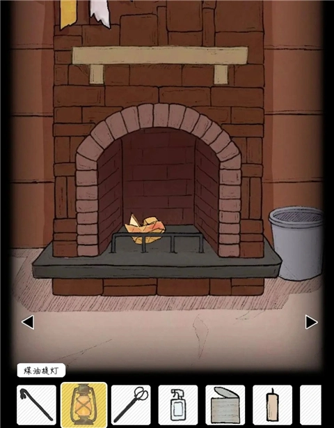 将木雕船扔入烟囱中,后将煤油提灯也扔入其中生火,蜡烛点击火光得到燃烧的蜡烛。将火钳放入火堆,得到床旁边柜子右侧门钥匙,打开得到旋钮。