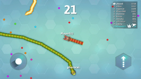 身体越长,在移动的时候,会有一个屏障,对手在移动的时候反应不够快,碰到你的身体了就会被自动消灭,贪吃蛇游戏攻略大全我们还可以多进行扭动,多划几个圈把对手围起来。