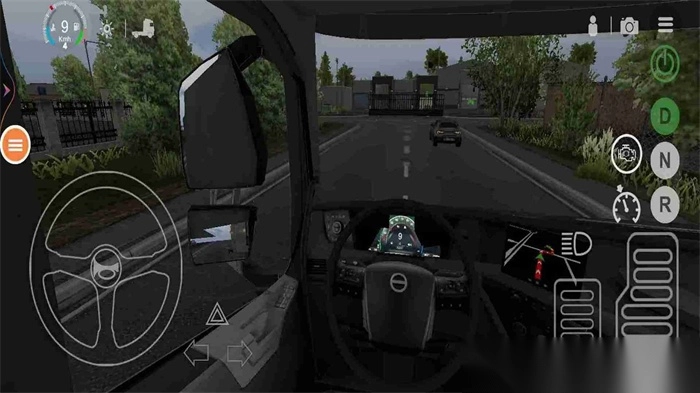 2. 游戏真实还原了卡车驾驶舱视角,包括后视镜、仪表盘等细节,增强驾驶沉浸感。