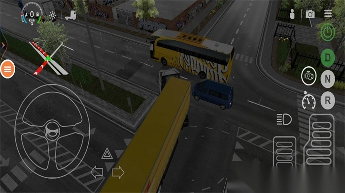 1. 通过虚拟方向盘或重力感应操控卡车,遵守交通规则按时将货物送达指定地点。