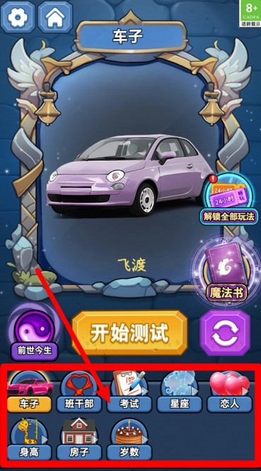 2. 测试项目超丰富,包含车子、班干部、考试、星座等项目,满足你对未来人生的各种想象。