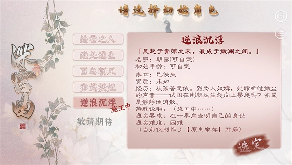 3、玩家自己最好是妃以上级别,受宠的,这样在面见圣上的时候可以通过选项救冷宫里的人