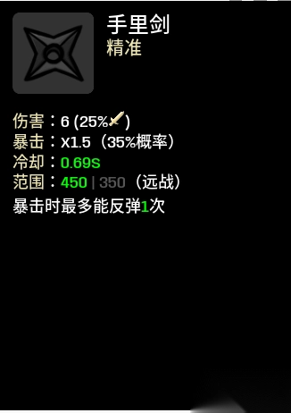 3、如此一来,便能助力玩家在前期具备相当不错的强度,而且手里剑在暴击时还能够反弹一次。