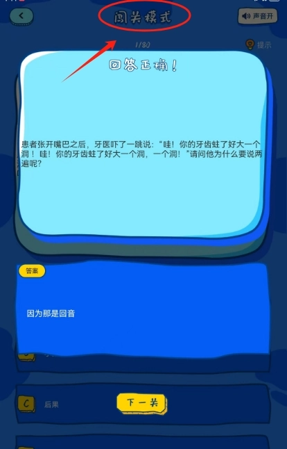 羊羊脑洞大挑战,一款激发创意思维的趣味问答游戏。玩家将跟随可爱的羊羊主角,体验300+个精心设计的脑筋急转弯。游戏采用智能难度调节机制,题目从生活常识到冷知识谜题循序渐进。