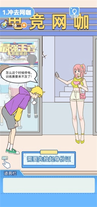 2、然而网吧仅剩下一台电脑,此时主播必须抢到这台电脑,只需直接把自己的身份证拖上去,就能通过这一关卡。