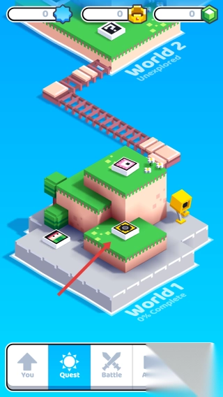 3、地图解锁:点击World1的绿色地块,即可开启全新关卡或场景。