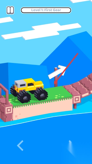 2. 驾驶闯关:操控黄色卡车穿越桥梁,完成Level1挑战。