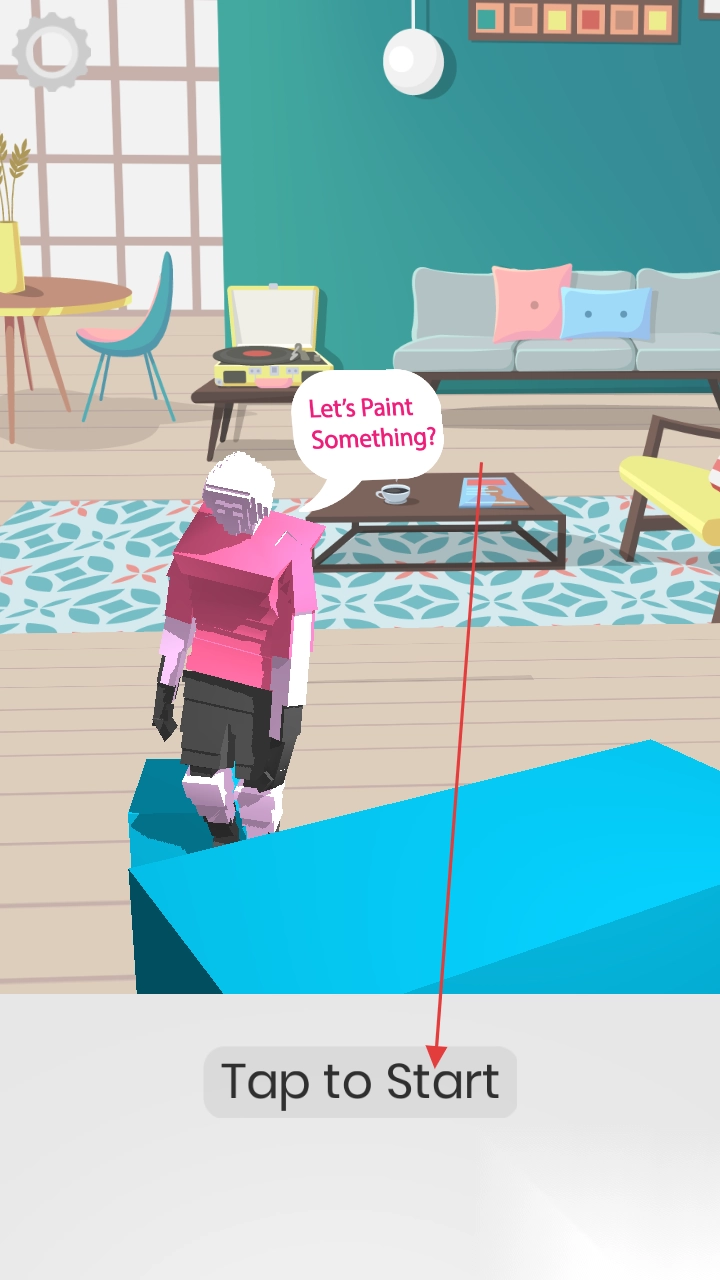2、在绘画界面,按“SwipetoSwing”提示,滑动屏幕摆动颜料桶,绘制独特图案。