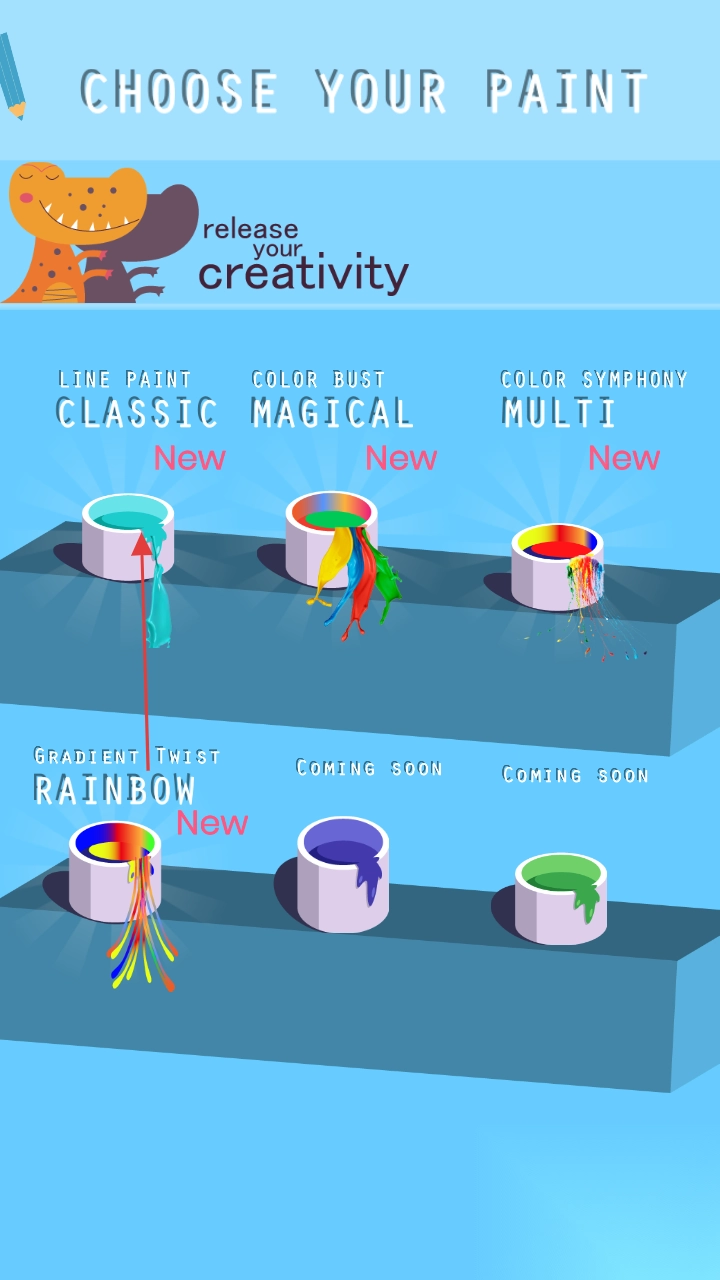 1. 点击“TaptoStart”开启创作,挑选心仪的颜料(例如LINEPAINTCLASSIC),尽情释放创意。