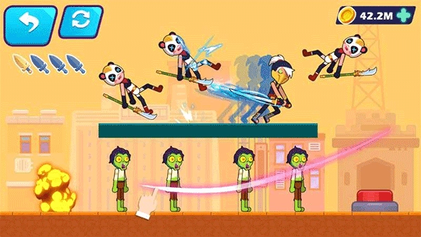 2、你只需要使用手指从敌人身上滑过,人物会随着的画的轨迹出刀。