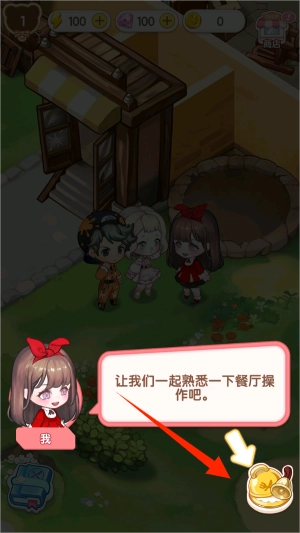 1. 进入游戏之后,依据情景对话,开启餐厅的重建之旅。