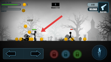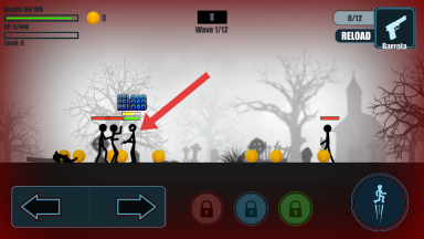 1. 进入墓地场景后,通过左右箭头键操控火柴人移动,瞄准敌方火柴人,再点击射击键展开攻击。