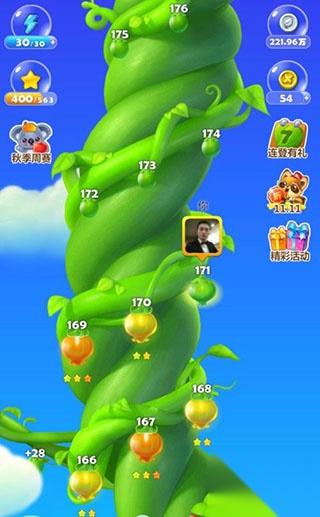 2、还可以用来升级金银果树。这个果树可以产出风车币(用来过关购买步数)、银币、还有精力(每局开始都需要一定的精力值)。随着金银果树的升级,产出量也会随之增加