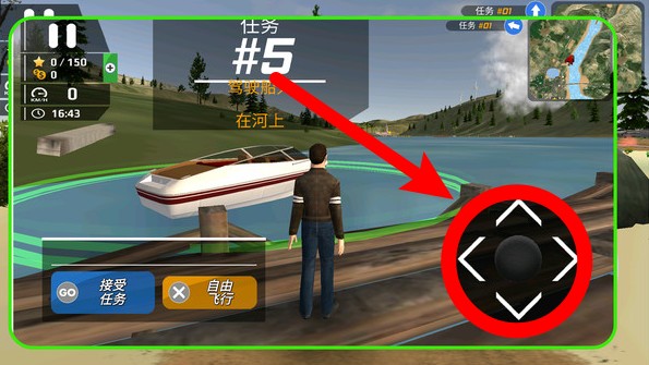 1.滑动右下角方向键可控制角色移动,沿路径前往任务目标点。