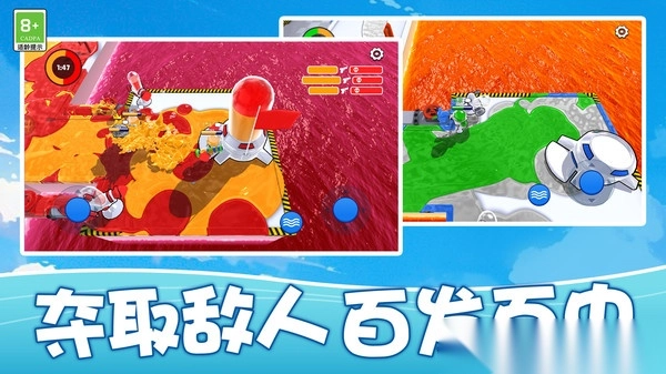 火柴人勇士大作战这款游戏,能为你带来超刺激的火柴人射击大战体验。在游戏里,你要靠喷射各种颜色的涂料,去占领更多地盘。地盘面积越大,你就能招募到越多的火柴人战士,从而拥有更强大的战斗实力,进而不断吞并更多敌人。