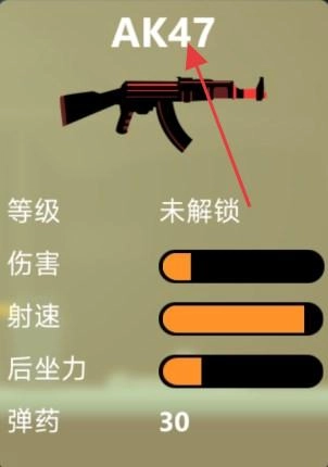 1、【AK47】伤害高射速可,后坐力稍大,备弹30,满足解锁条件后可获,适合中距离作战。