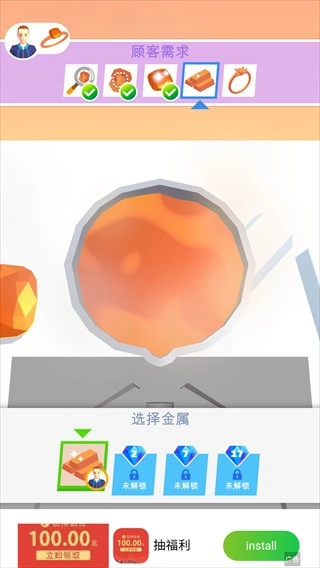 2、随着玩家技能的提升,玩家可打造更精美的珠宝,提高顾客们的满意度。