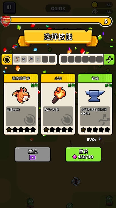 2、战士一旦升级至指定等级,便能解锁各类技能或武器。若重复选择,还能够提升技能星级。