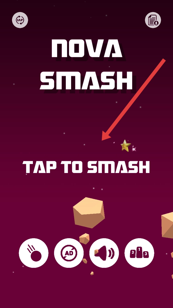1、进入像素碎石的游戏主界面,点击【TAP TO SMASH】,开启专属于你的太空粉碎冒险。