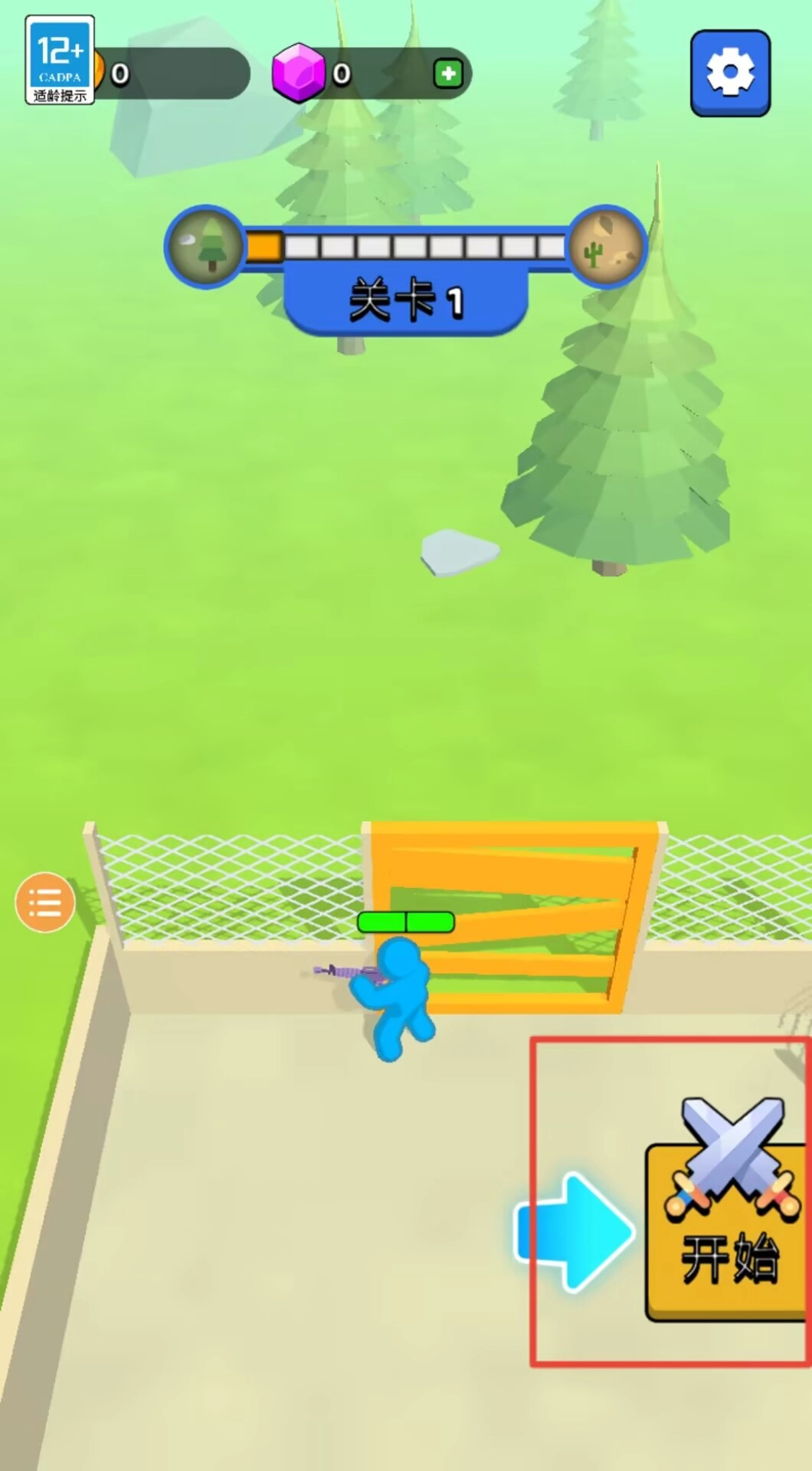 2、战前准备界面顶部展示当前关卡难度、持有货币数量,确认配置后点击开始按钮进入战斗场景。