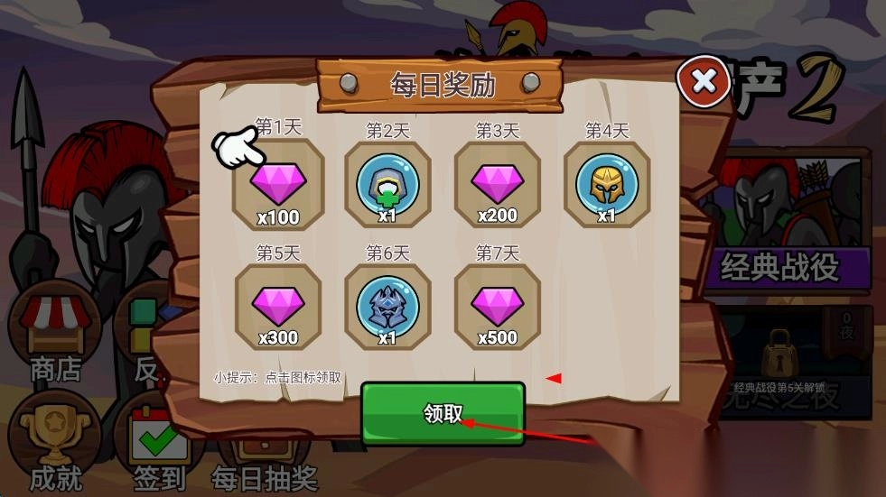 1、进入游戏后先在训练营招募基础步兵,通过收集黄金资源升级兵营,解锁弓箭手、矛兵等更多兵种。