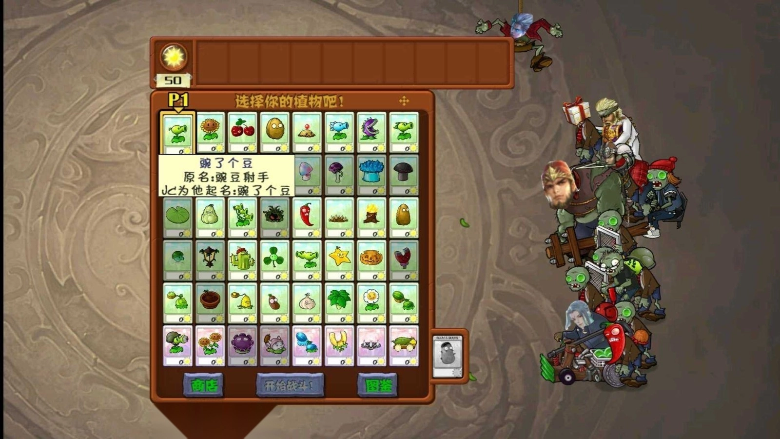 植物大战僵尸三国杀(PVZ三国杀版)是粉丝自制的改编版本,巧妙融合了植物大战僵尸(PVZ)与三国杀这两款经典游戏的元素。其各类策略对战玩法以PVZ为蓝本进行改编,同时融入众多三国杀角色,并对大部分贴图和图片做了修改,为玩家带来全新画面,还有0阳光无冷却的福利。