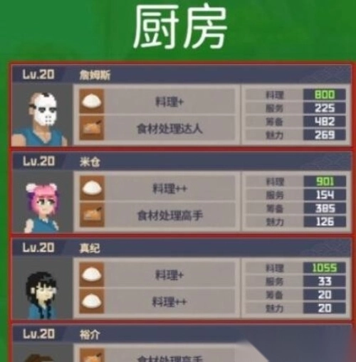 这四位员工能够通过升级解锁众多全新菜谱,性价比极高。