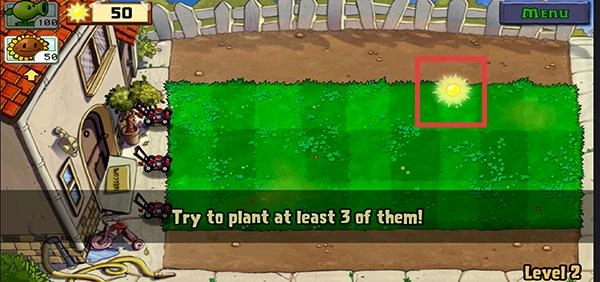 1. 点击向日葵所产生的光点,以及空中飘落的自然阳光,二者持续积累资源,以供后续作战部署使用。