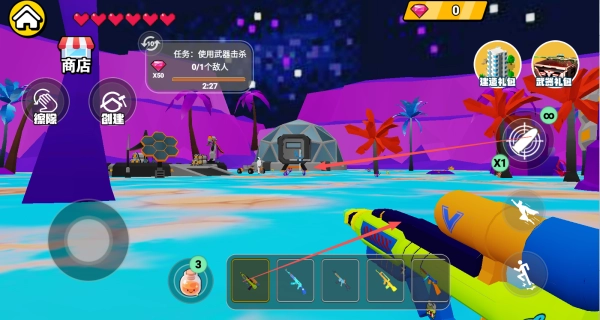 3、在琳琅满目的武器中挑选,锁定目标后展开射击,逐个消灭敌人。