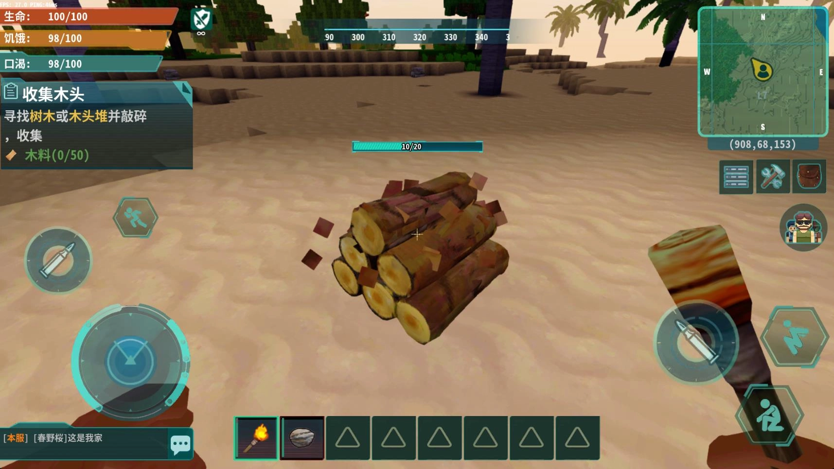 3、玩家可在游戏里自由探索,同时进行资源收集。